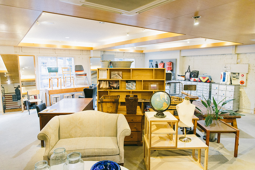 「2Fはリユースをテーマにしたフロアになります。家具は元々店舗で什器として使っていたものですし、古着も一度使用されたものを、もう一度楽しむという意味では、一種のリユースだと思います。古着屋さんで取り扱っているアイテムと大きな差はないと思うのですが、古着を選択することで生産時にかかる環境負荷や廃棄衣料を減らすことができます。よいものを長く使うことの大切さをお客様にもしっかり感じてもらえるように気をつけています。“古着”という今までにあったものでも、意識の向け方や考え方に共感していただけると嬉しいです。今、一緒に発信させていただいている『進化型古着屋“森”』と『岩切商店』もその考えに共感して、一緒に取り組んでくださっています」