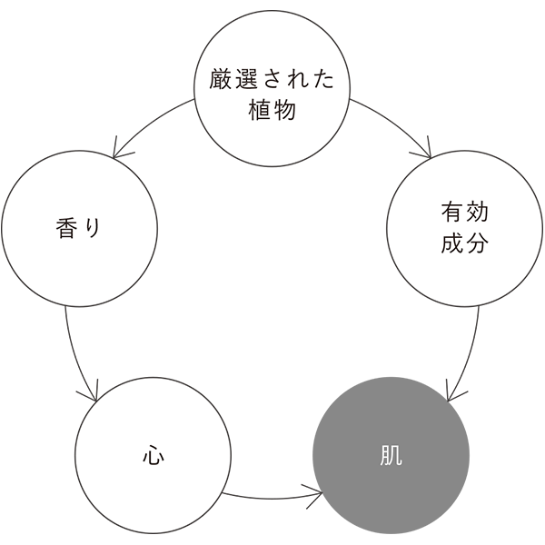 各地で丁寧に栽培された栄養たっぷりの植物は、日々さまざまなダメージにさらされている私たちの肌を癒し、肌がもともと持っている力を引き出して、美しさと強さを取り戻します。
