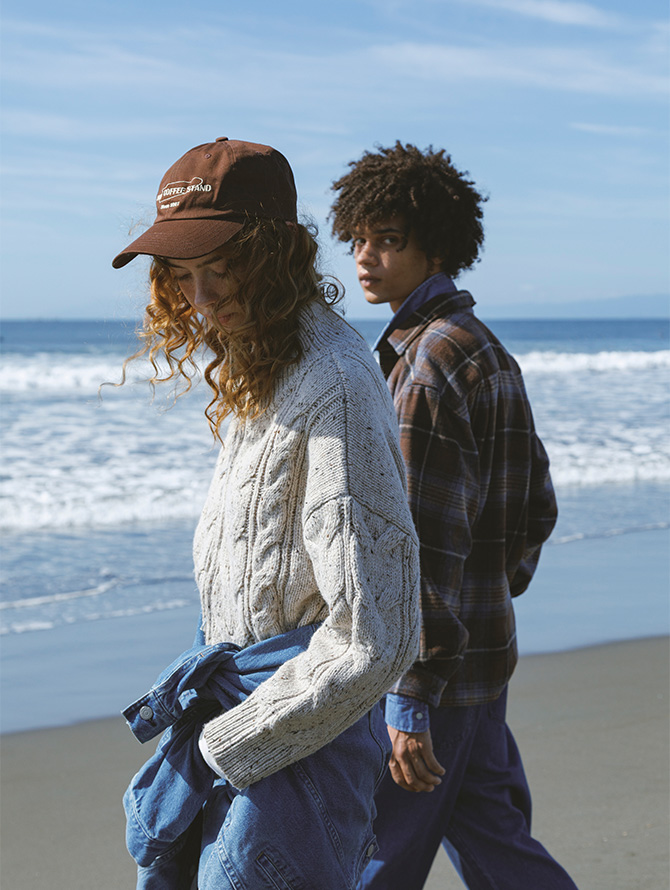 アメリカ・西海岸の自由な空気感を取り入れたリラックスカジュアル 「トレンド・ベーシック・リラックス」3つのキーワードをリアルな日常着に落とし込んだ上質なウェア、シルエットと加工感にこだわったハイクオリティなジーンズ、どこにでも着ていきたいコンフォータブルな着心地と機能性を兼ね備えたハイブリッドウェアを軸に、自由な遊び心をエッセンスとした心地よくて愛着の湧くカジュアルウェアを提案します。 「ゆったりと流れる時間の中で過ごすあたり前の日常」を自由な空気感で彩ります。