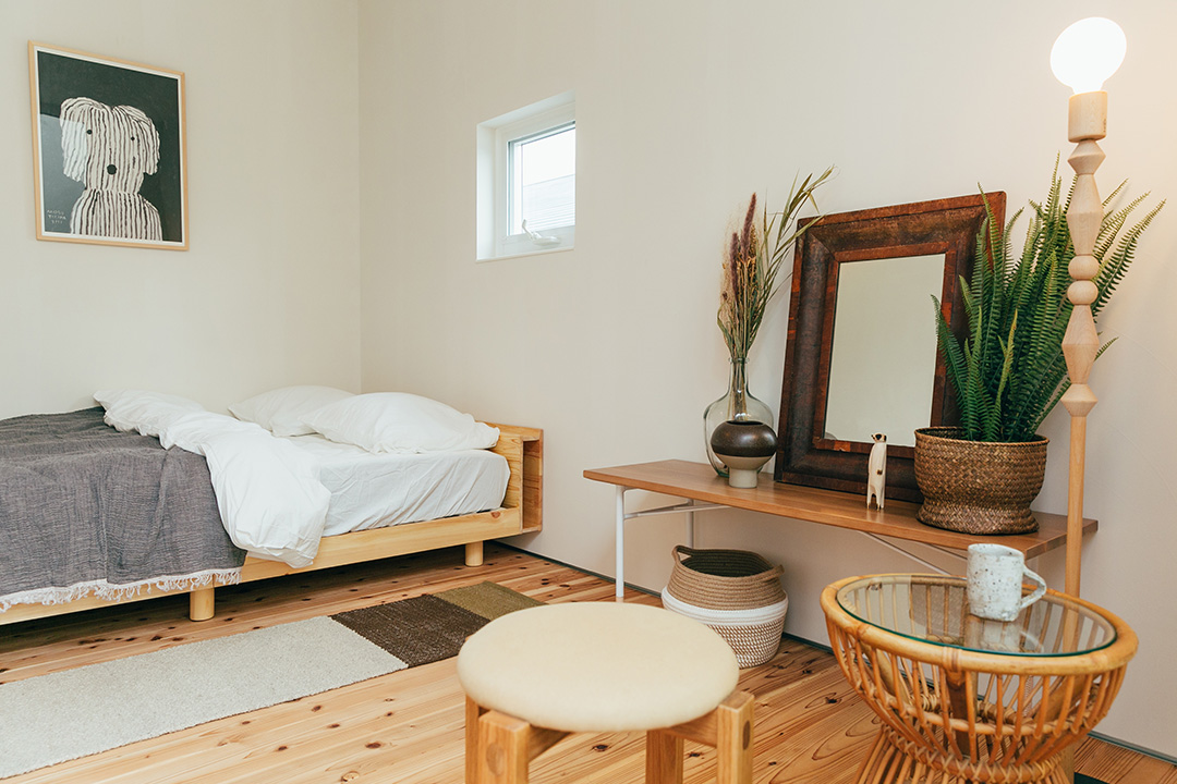 こだわりに木製家具や植物に囲まれた