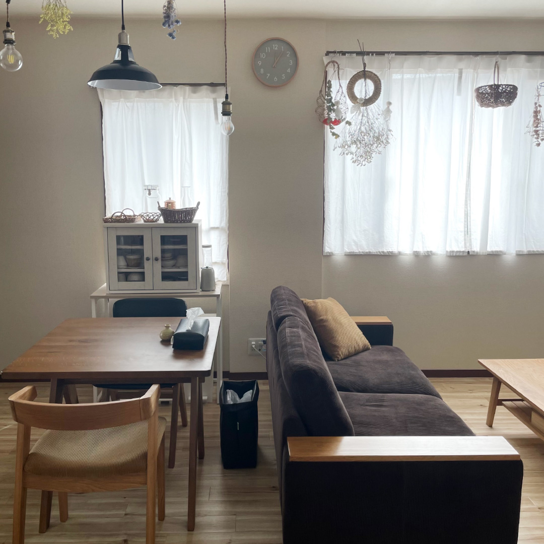 ダイニングテーブルのみナチュラルブラウンの色味ですが、違和感なく馴染んでいます。