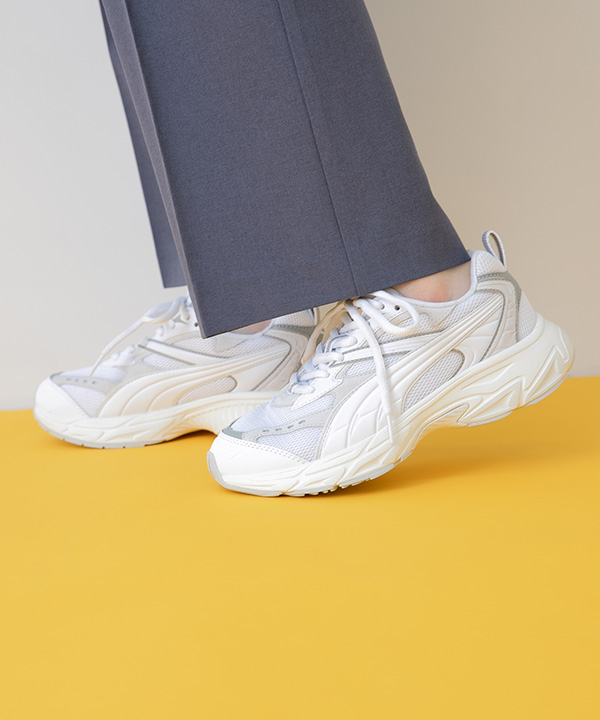「MORPHIC (モーフィック)」は、2000年代のランニングシューズをベースにしレトロな雰囲気を持たせたモデルです。ランニングシルエット、メッシュと光沢感のあるシンセティックレザーが特徴で、ミッドソールには軽量でクッション性の高いEVA素材を使用しており、快適な履き心地も魅力的。デザイン性と実用性を兼ね備えた、普段使いにぴったりのアイテムです。