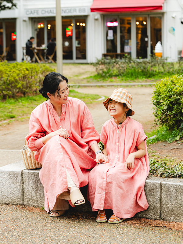 ママとキッズの笑顔を引き出す、明るいピンクが主役のスタイリング。