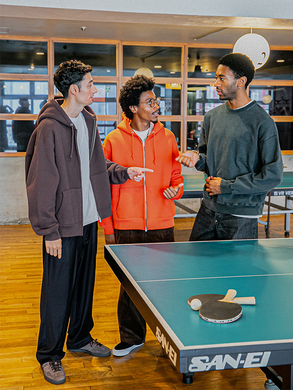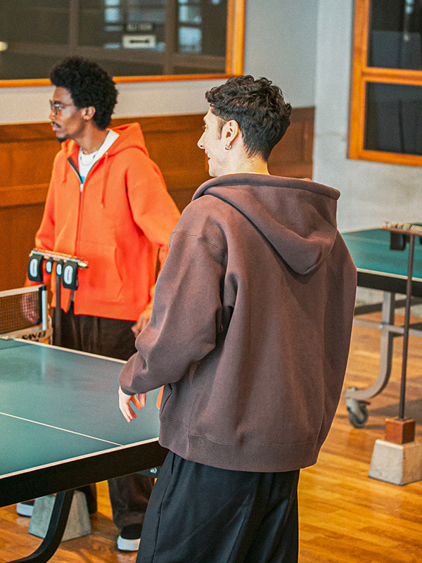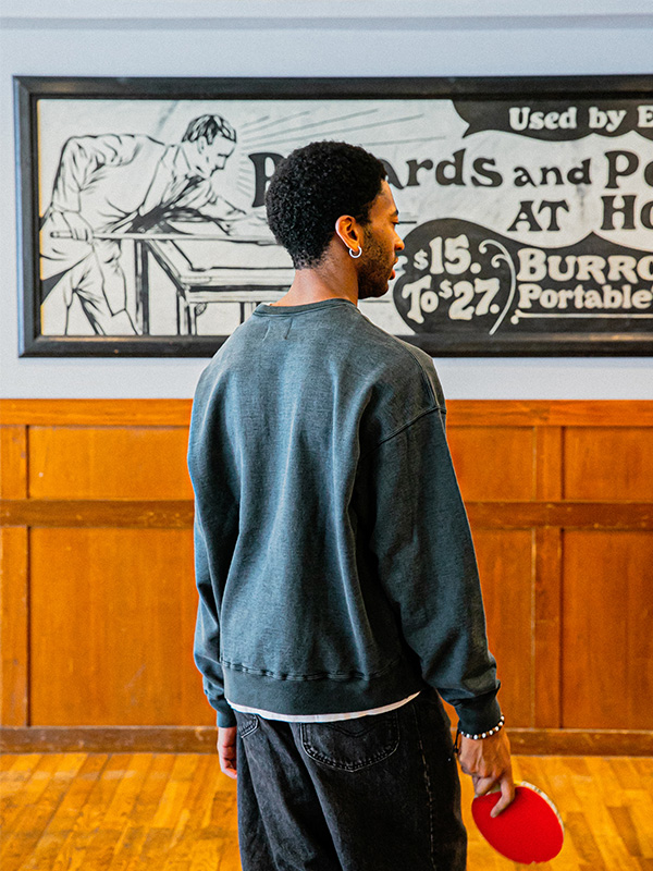 アーティストたちが好んで愛用したアメリカ90’sのスウェットのディテールや雰囲気にインスピレーションを得ながら、国内工場で編んだタフな裏毛生地を用いて丁寧に現代のシルエットに落とし込みました。