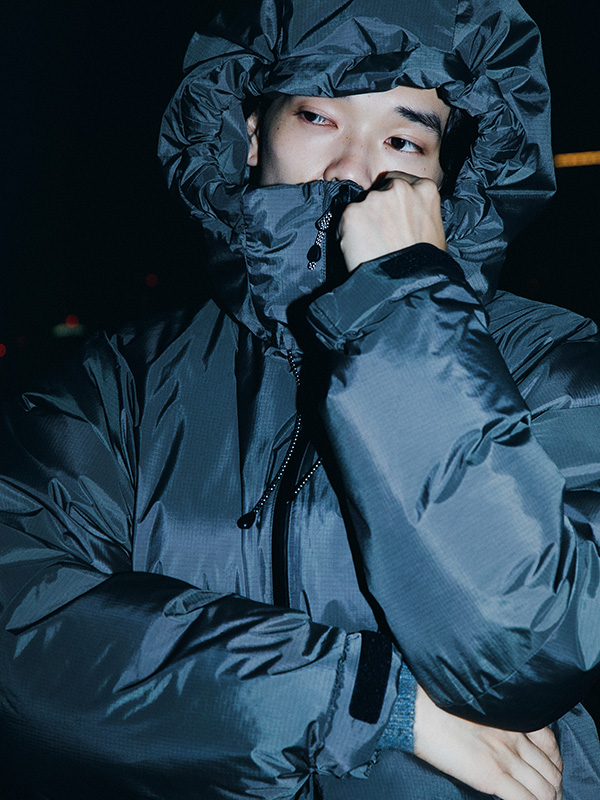 高い撥水性と透湿性を併せ持つNANGAを代表する多孔質ポリウレタン防水コーティング素材「AURORA-TEX(オーロラテックス)」と、水の侵入を防ぐ止水ジップを採用。都市生活からアウトドアシーンまで幅広く対応します。また、今回も中綿は回収羽毛を再生加工した「Green Down(グリーンダウン)」を使用し、新毛以上に清浄な状態へ仕上げられたリサイクルダウンは、地球環境への配慮と快適な着心地を両立しています。