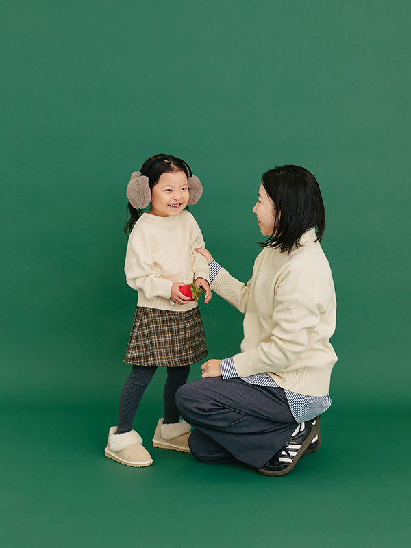 はじける笑顔とボアのぬくもりで、寒さ知らずの親子時間。
