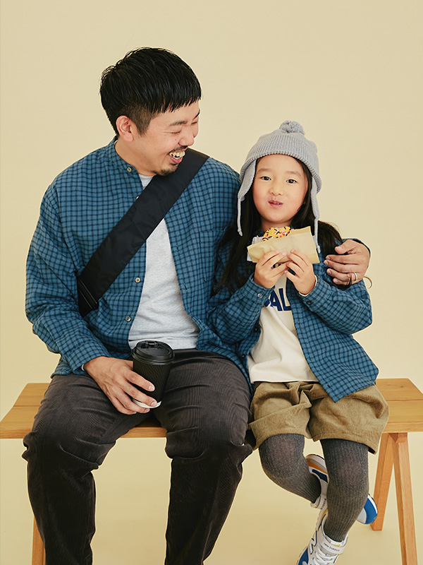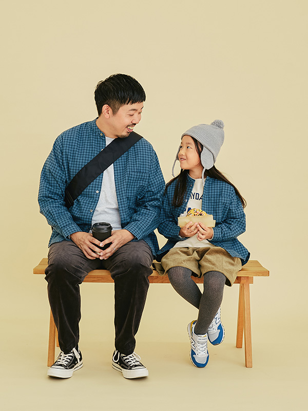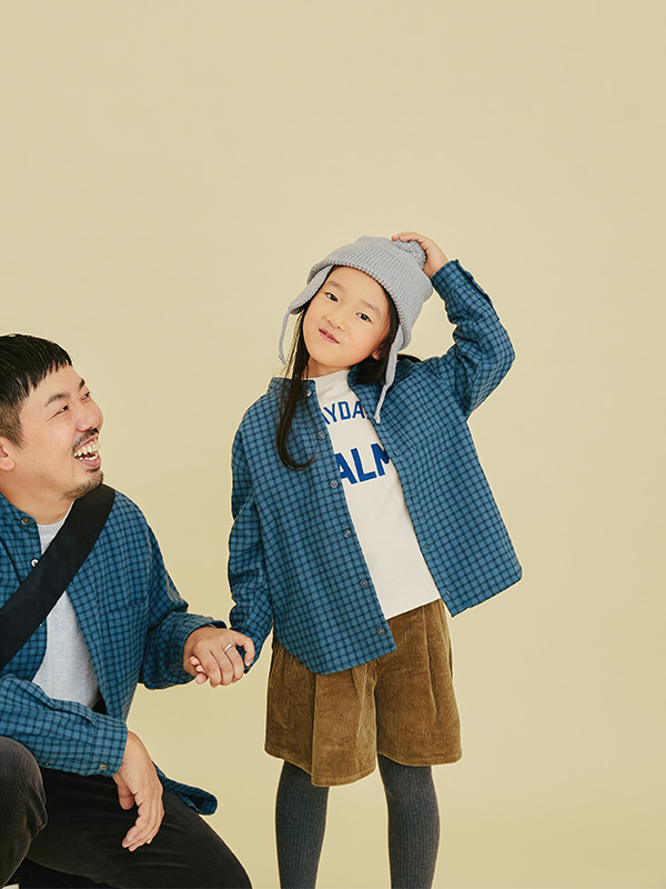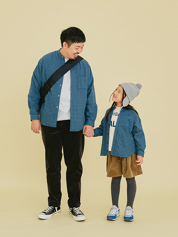 メンズライクなネルシャツなら、パパも自然におそろいが楽しめます。