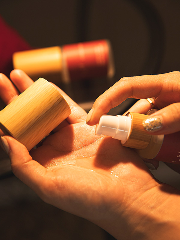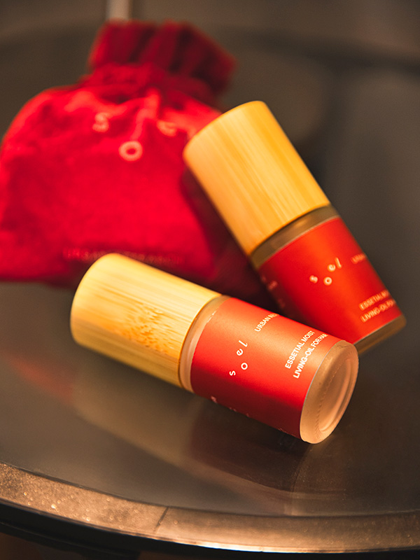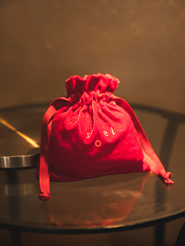 今回のオイルには、ホリデームードを纏った特別な「赤い巾着」もご用意。