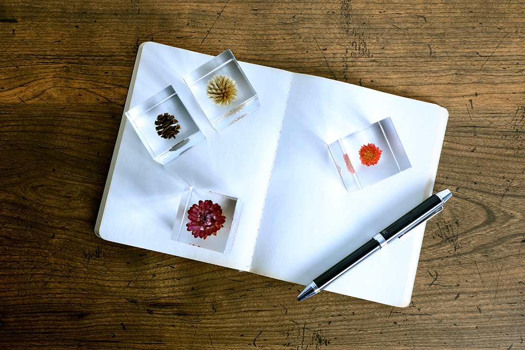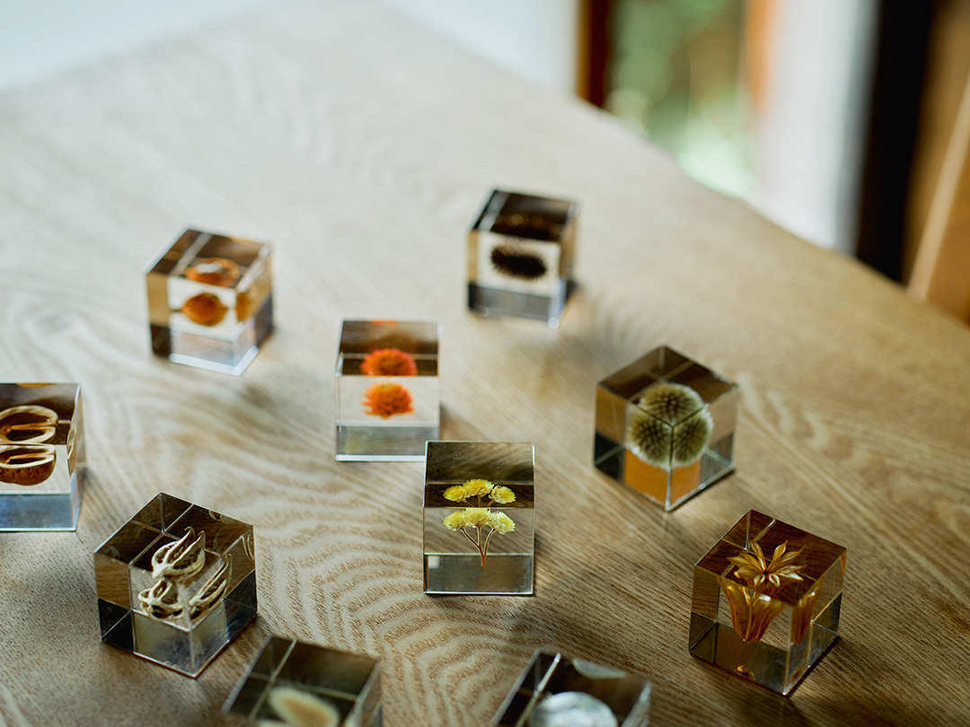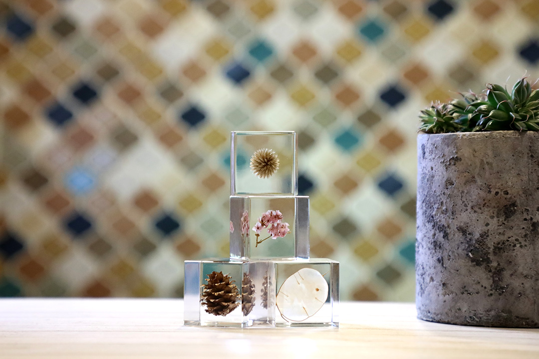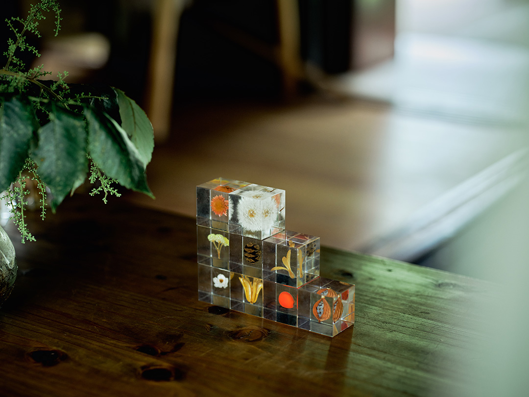Sola cubeは4cm角のアクリルキューブに植物の美しい瞬間を閉じ込めたウサギノネドコの代表的なプロダクトです。