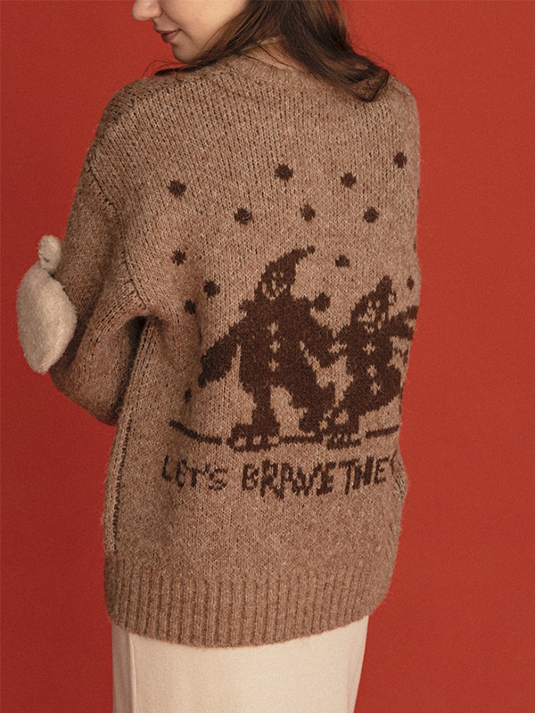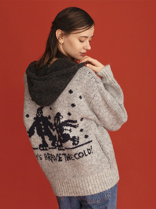 『Happy Winter』をテーマにオリジナルで描き下ろしていただいたイラストを、ダブルジャガードのニットで再現。
