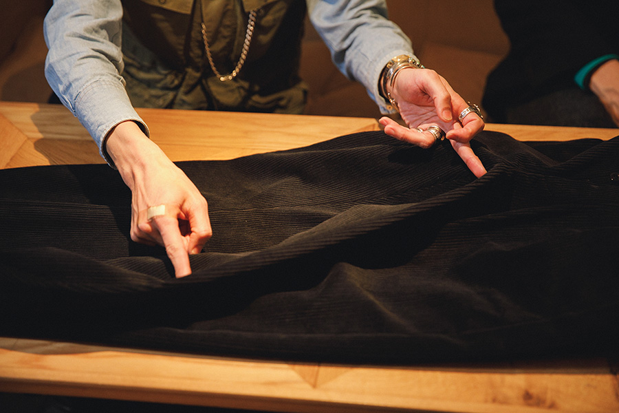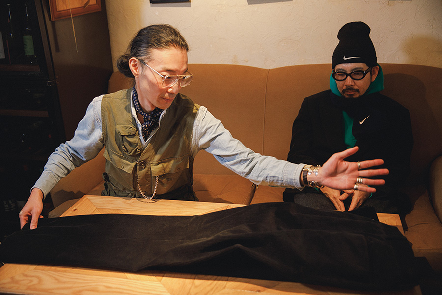 阿部がイメージする過去のワイドシルエットこそ、高畠氏が手掛けたもの。しかも、一般的なアプローチとは異なる手段でパターンを引いていたという。