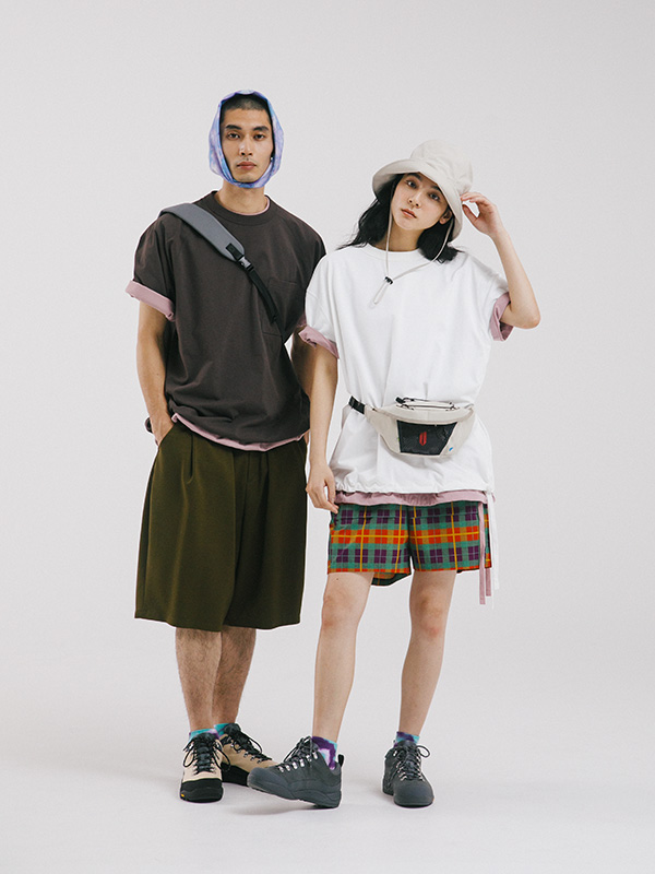 シンプルな無地ベースのデザインなので、1枚でもレイヤードでも対応可能。タウンユースから軽めのアウトドアシーンまで幅広く提案します。