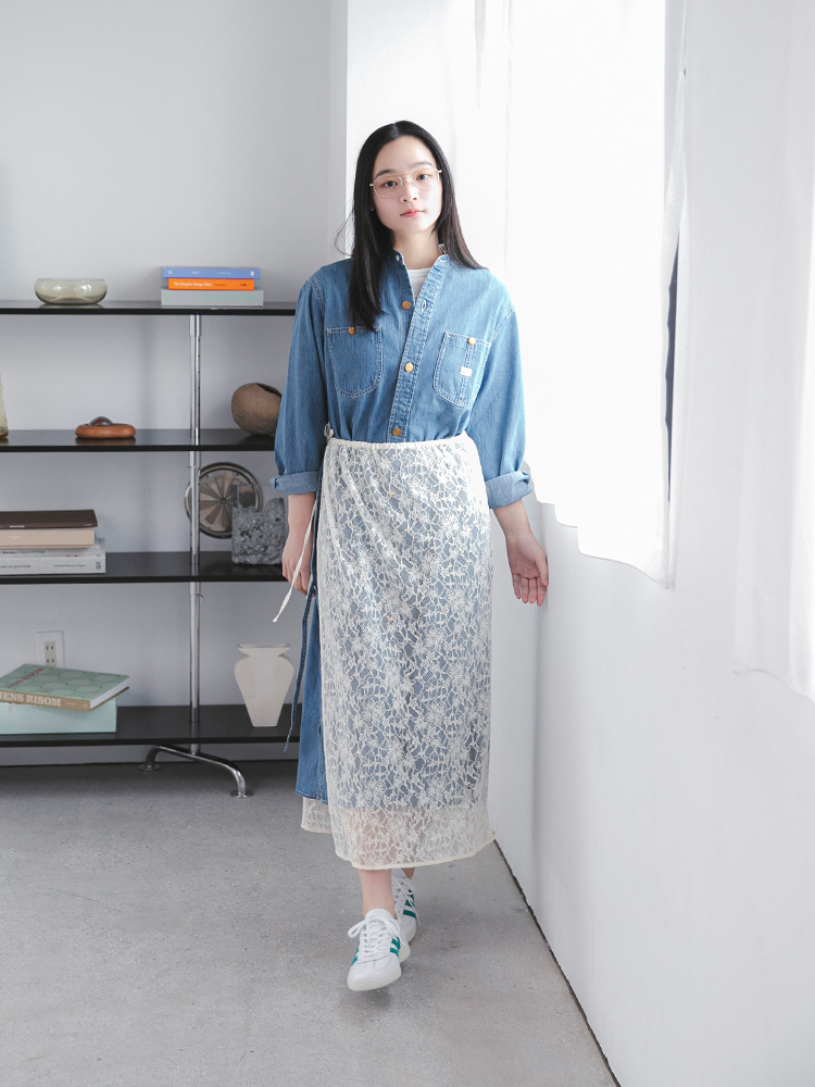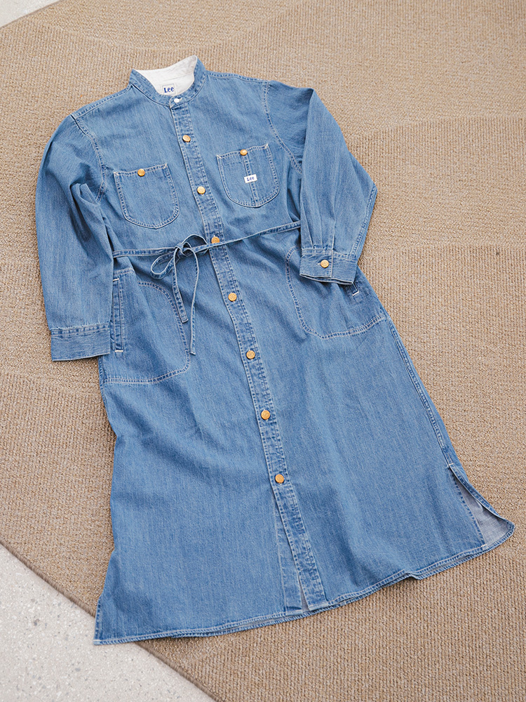 Leeの通常ラインで展開されているデニムシャツをベースに、着丈を伸ばしてワンピースとして別注しました。