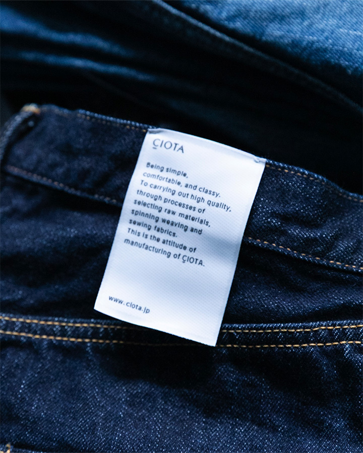 80年代のLevi’s 501®の中でも希少とされる、最後のセルビッジモデルをモチーフにしたストレートシルエット。無駄を削ぎ落としたシルエットに、CIOTAらしいクリーンな質感が融合した一本。