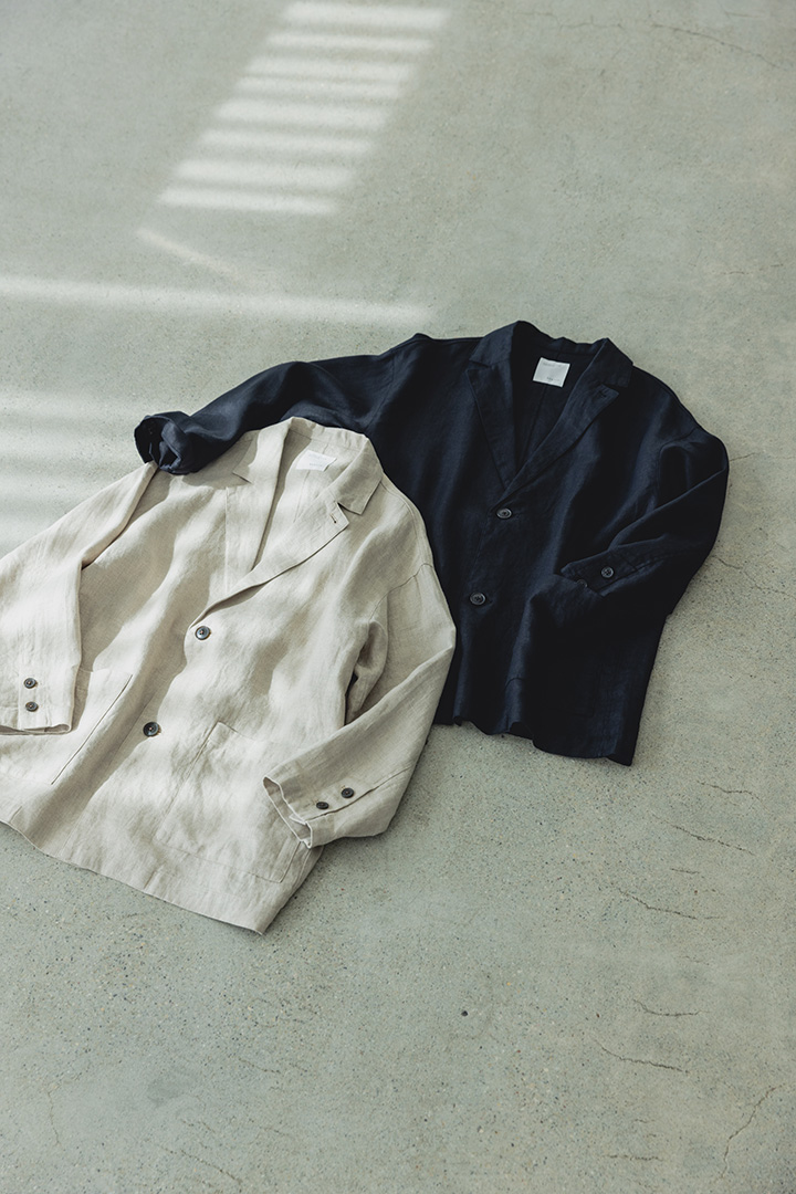 「北欧、暮らしの道具店」 × 「かぐれ」でコラボレーションした「ラフに、カーデ感覚」フレンチリネンのテーラードジャケットを再発売いたします。