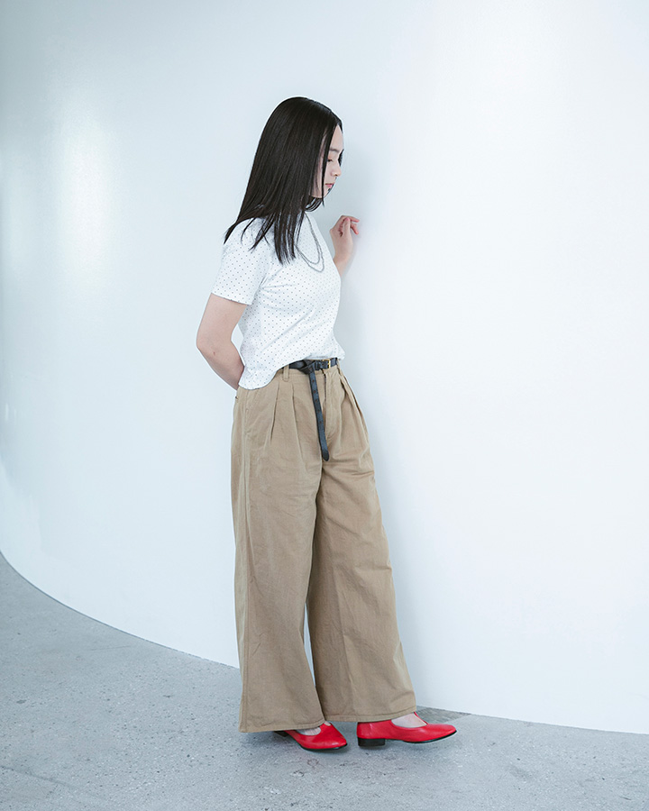 今回URBAN RESEARCH DOORSでは、ヘインズ別注初となるドットデザインを採用。ドットの大きさや並びは、何度も試行錯誤を繰り返し、 可愛くなりすぎず、大人にちょうどいい「絶妙なバランス」に仕上げました。緩やかなネックラインなど日本人女性の体形に合わせたシルエットで絶妙なフィット感を実現。ウエストをシェイプすることで女性らしく着られる形を追及しました。