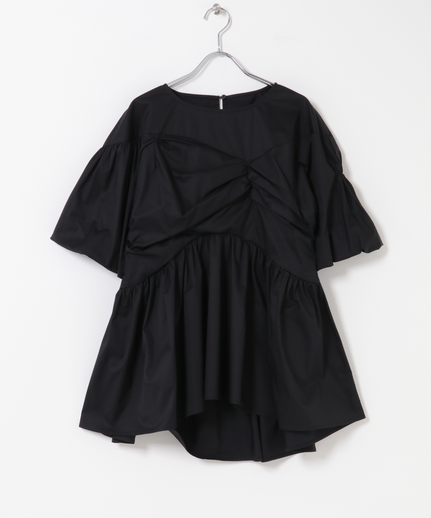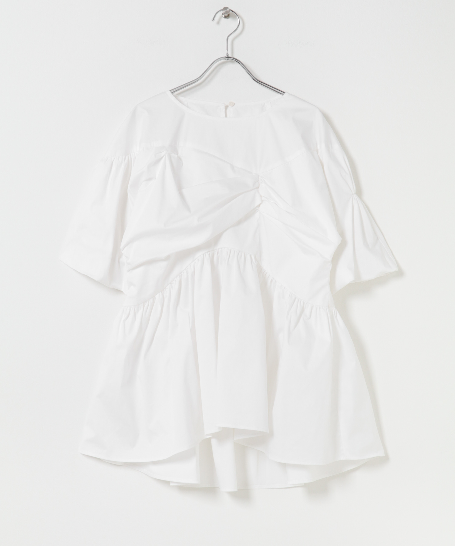 贅沢なギャザーが生む、立体的なペプラムシルエット。