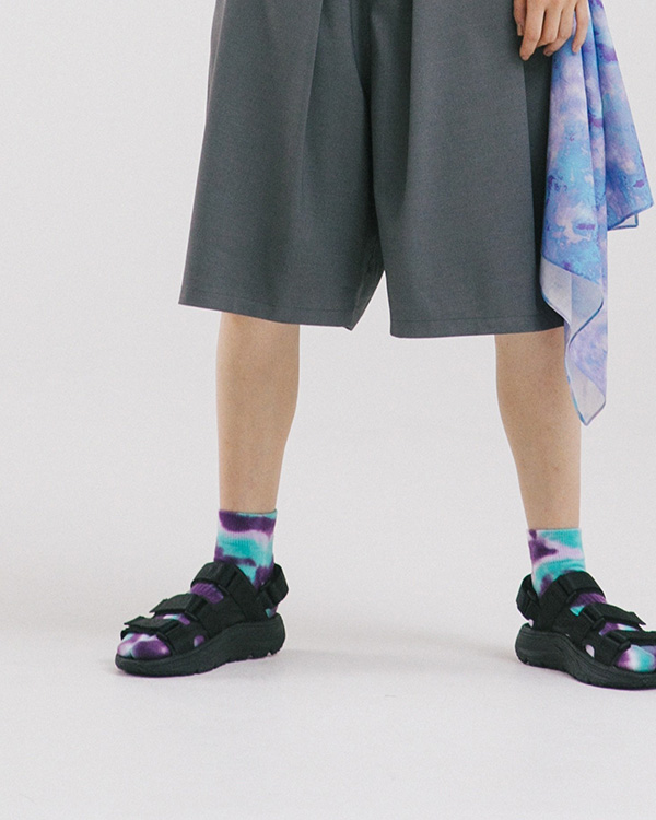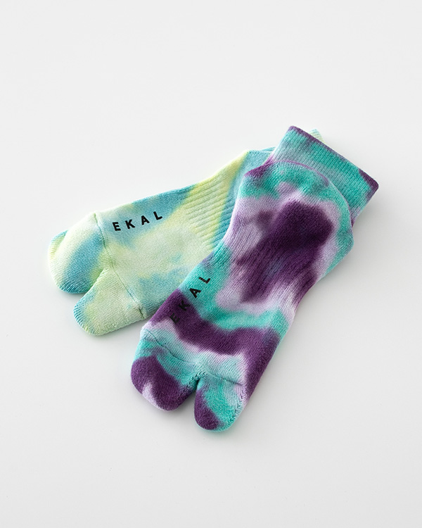 上質な綿コーマ糸で編み立てたアンクルソックス。1足ずつ職人の手作業によるタイダイ染めを施しています。