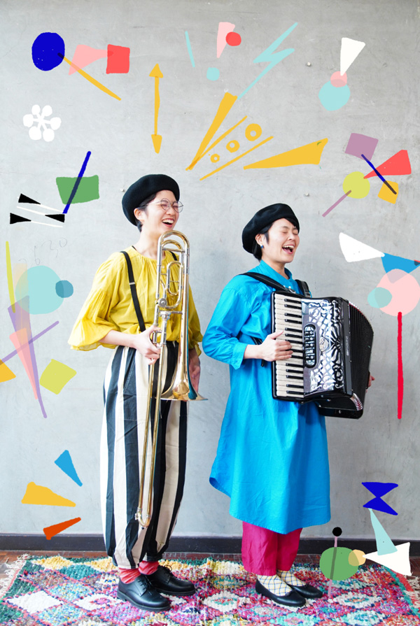 音とこどもが大好物!な、上山紘子(アコーディオン)と前村晴奈(トロンボーン)が繰り広げる、好奇心をくすぐるおんがく会です。大人も子どもも、みんなで一緒に不思議な音とあそびの世界を冒険しよう!