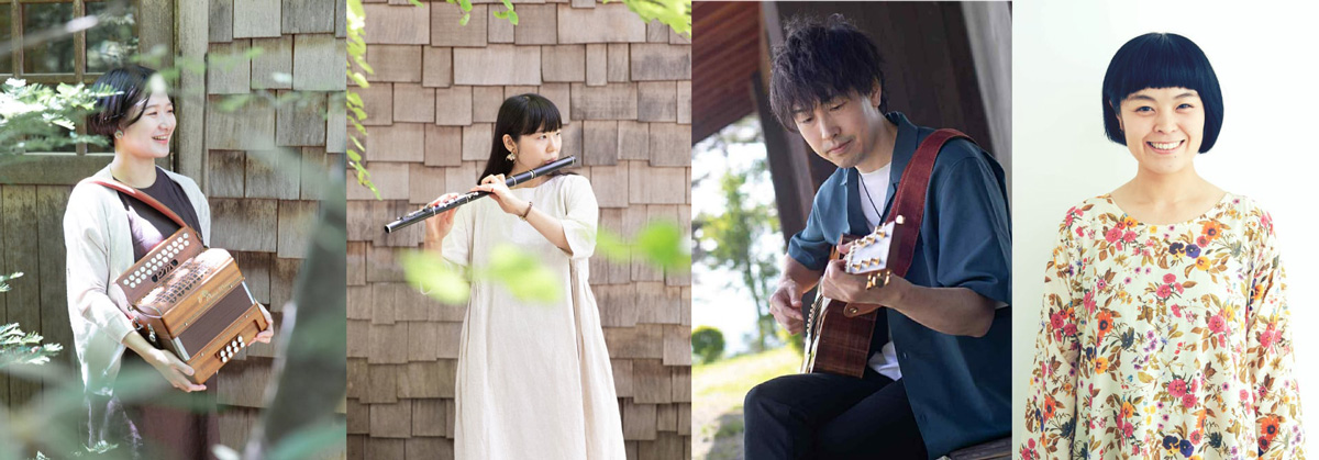 須貝知世(flute)、木村穂波(button accordion)、上山紘子(piano accordion)、干川博(guitar)